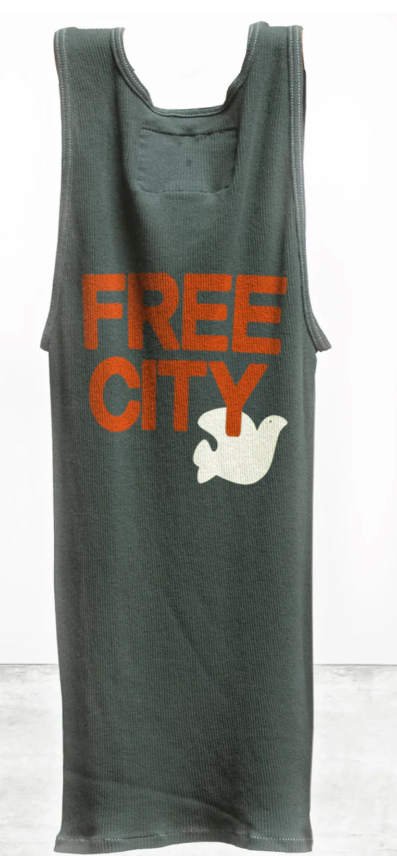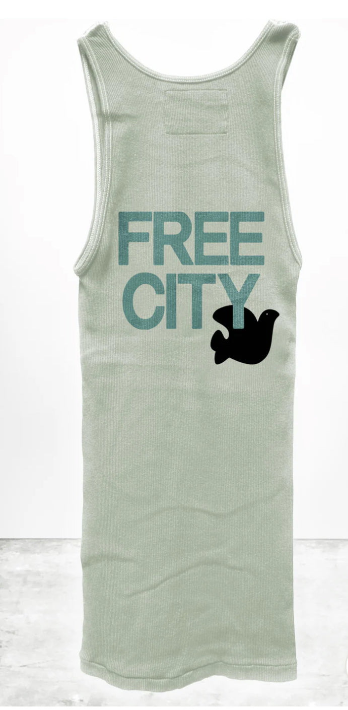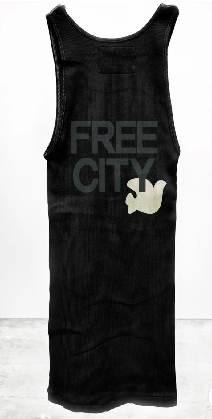 This classic ribbed scoop neck tank is hand-screen printed, washed and hand-made in Los Angeles, CA. 100% custom. 100% FreeCity!