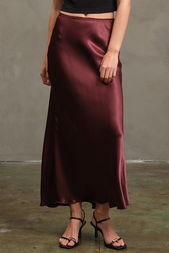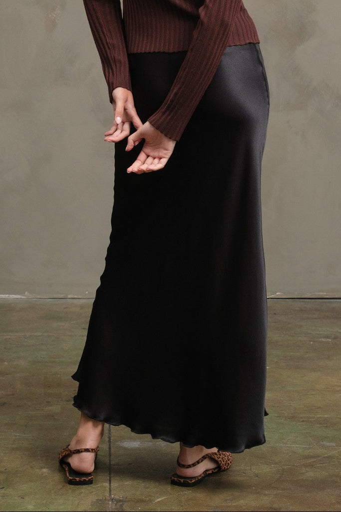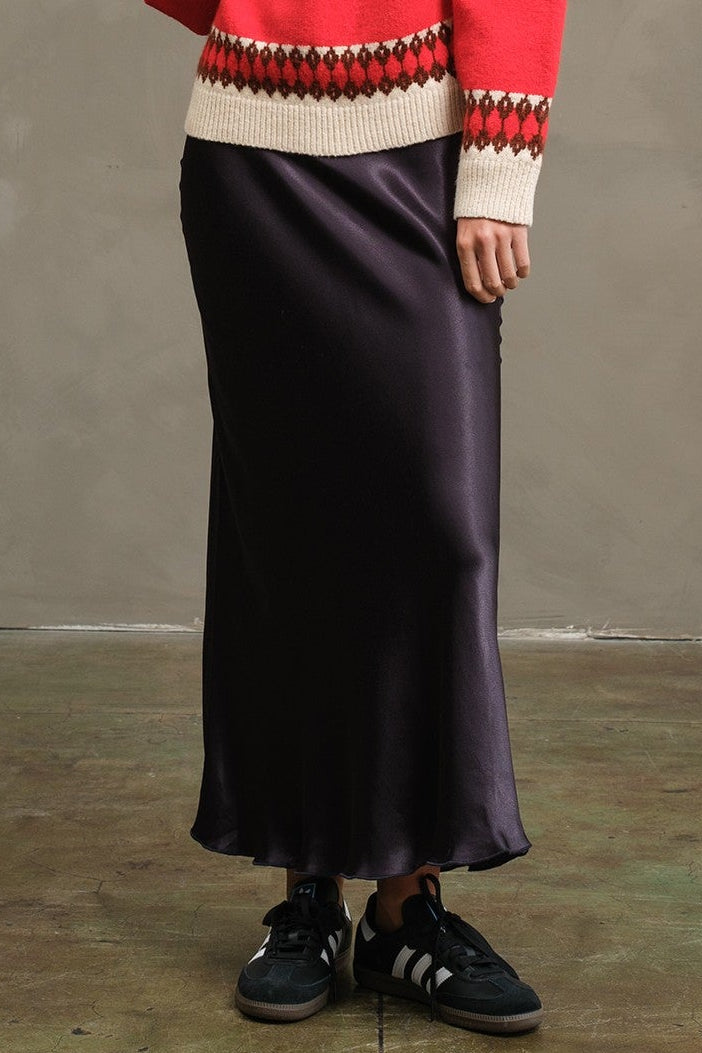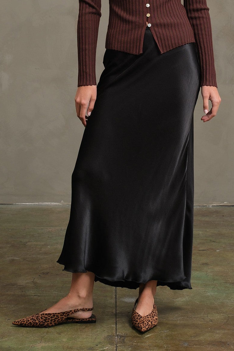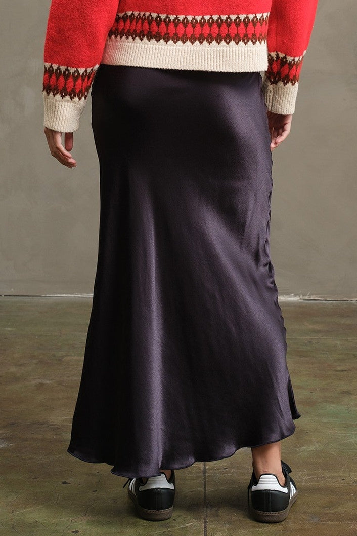The slip skirt you’ll wear on repeat. This satin midi drapes beautifully with a soft, liquid-silk feel that moves with you. Perfect for holiday dressing, date nights, events, and elevated everyday looks. With an easy pull-on waist and a flattering bias cut, it’s effortlessly chic styled with a fitted tank, chunky sweater, or heels.