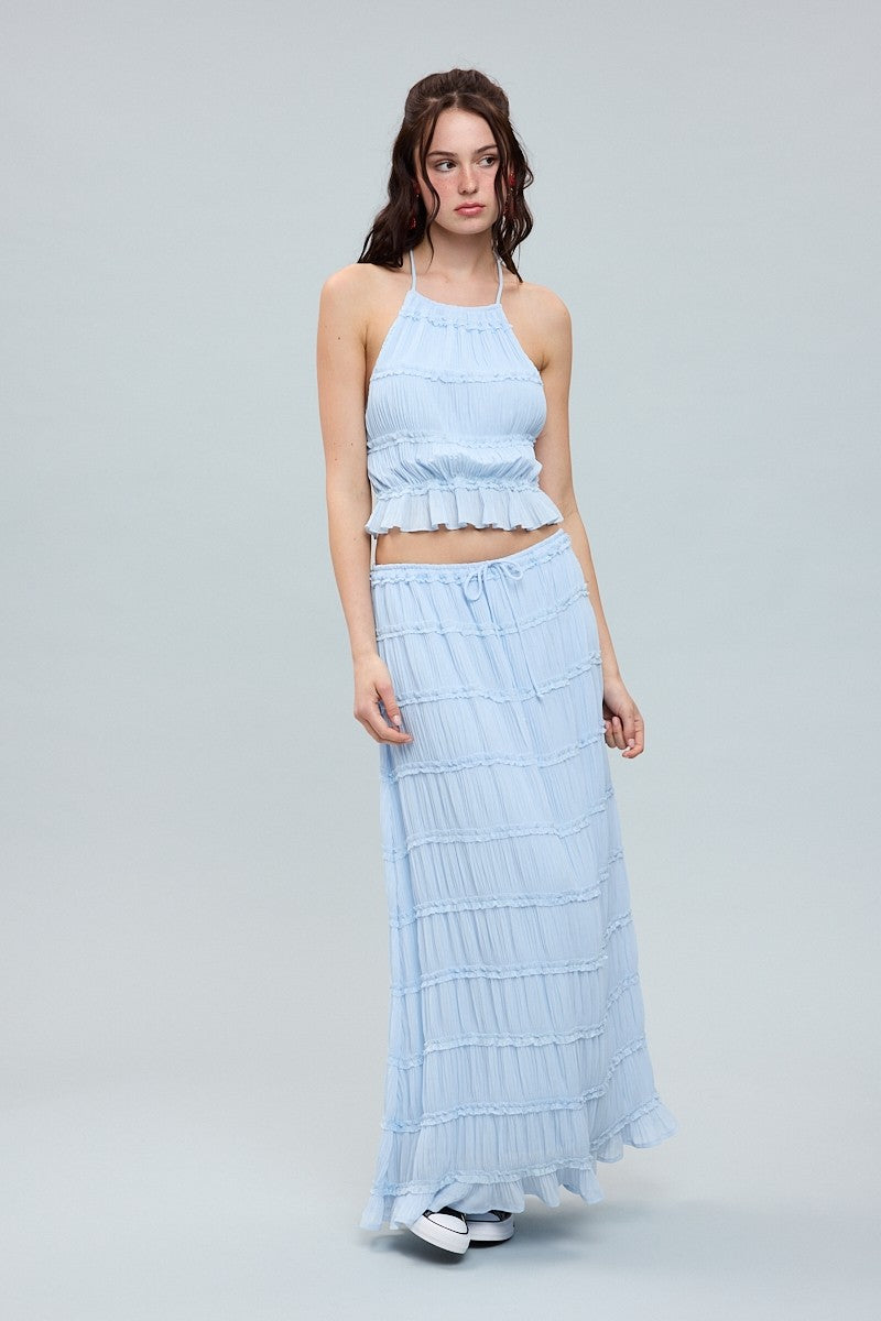 Tiered Crinkle Tie Top Maxi Skirt Set