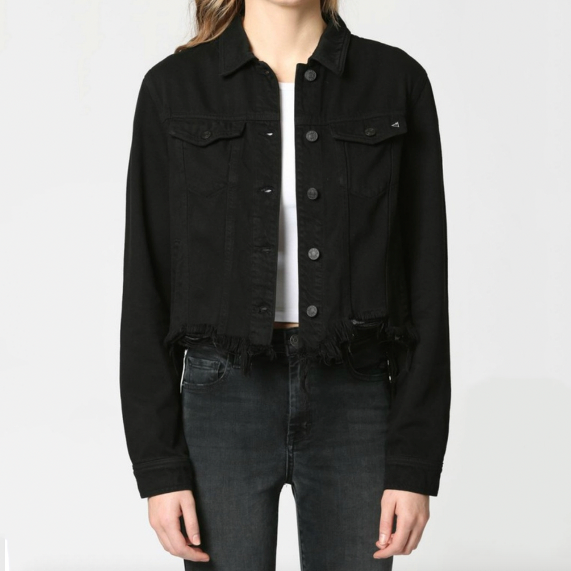 A Hidden jacket is a must-have in your closet rotation! This jacket features a slightly cropped fit and a frayed hem