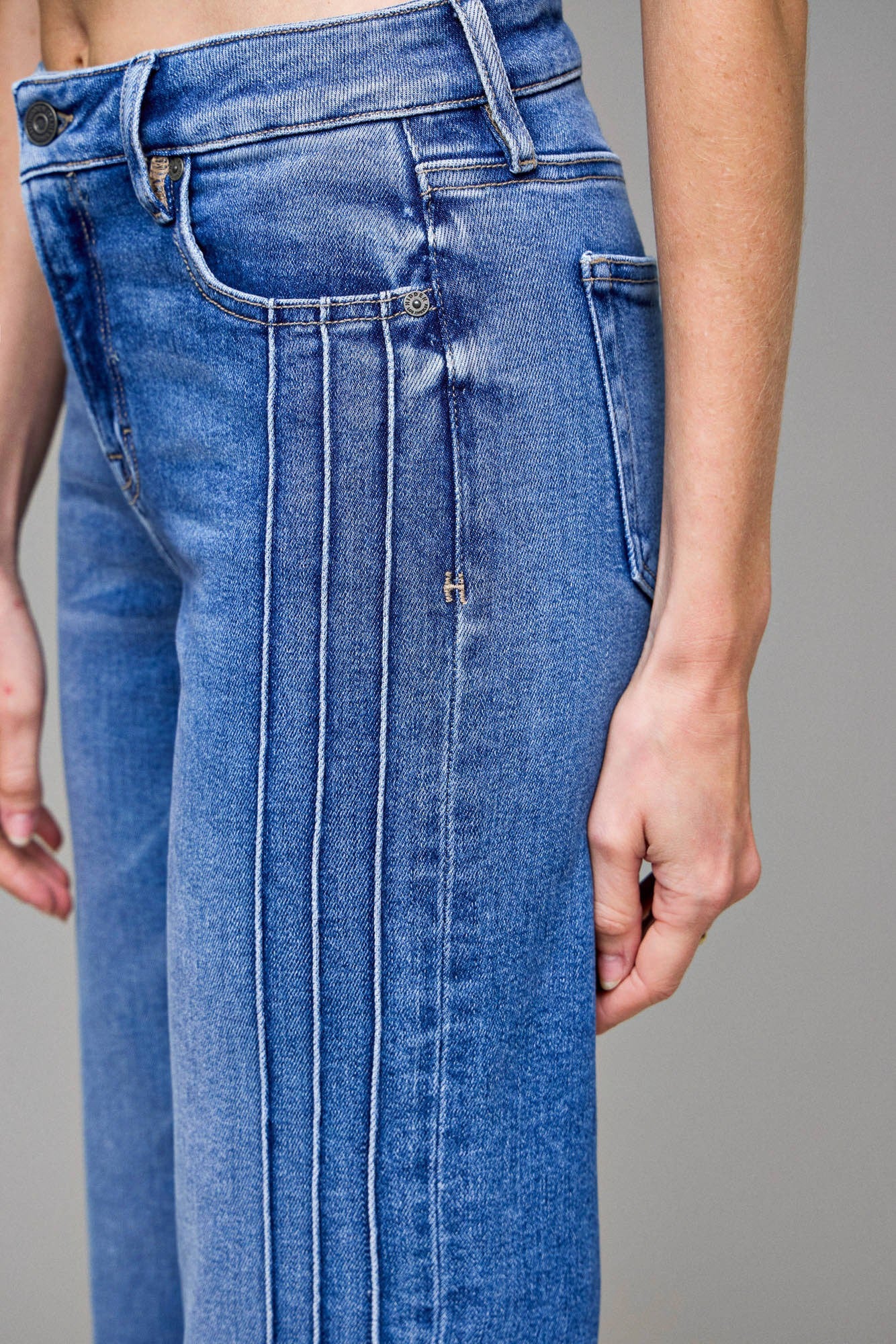 A modern update to classic wide-leg denim. Designed with a flattering high-rise fit and statement side panel detailing, this pair elongates the leg while giving you that effortless cool-girl edge. Fit: Front Rise - 9 1/2" Inseam - 33"