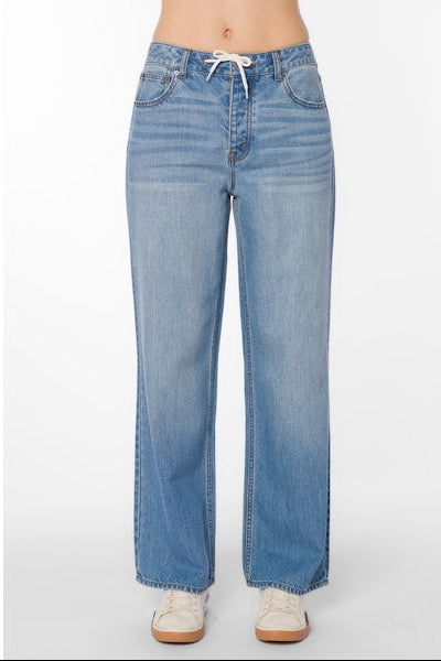 Effortless and easy, these relaxed straight-leg jeans combine classic denim styling with an unexpected comfort detail. Designed with a flattering mid-rise fit and a laid-back silhouette, they feature a drawstring waistband for a casual, relaxed feel while still looking polished.