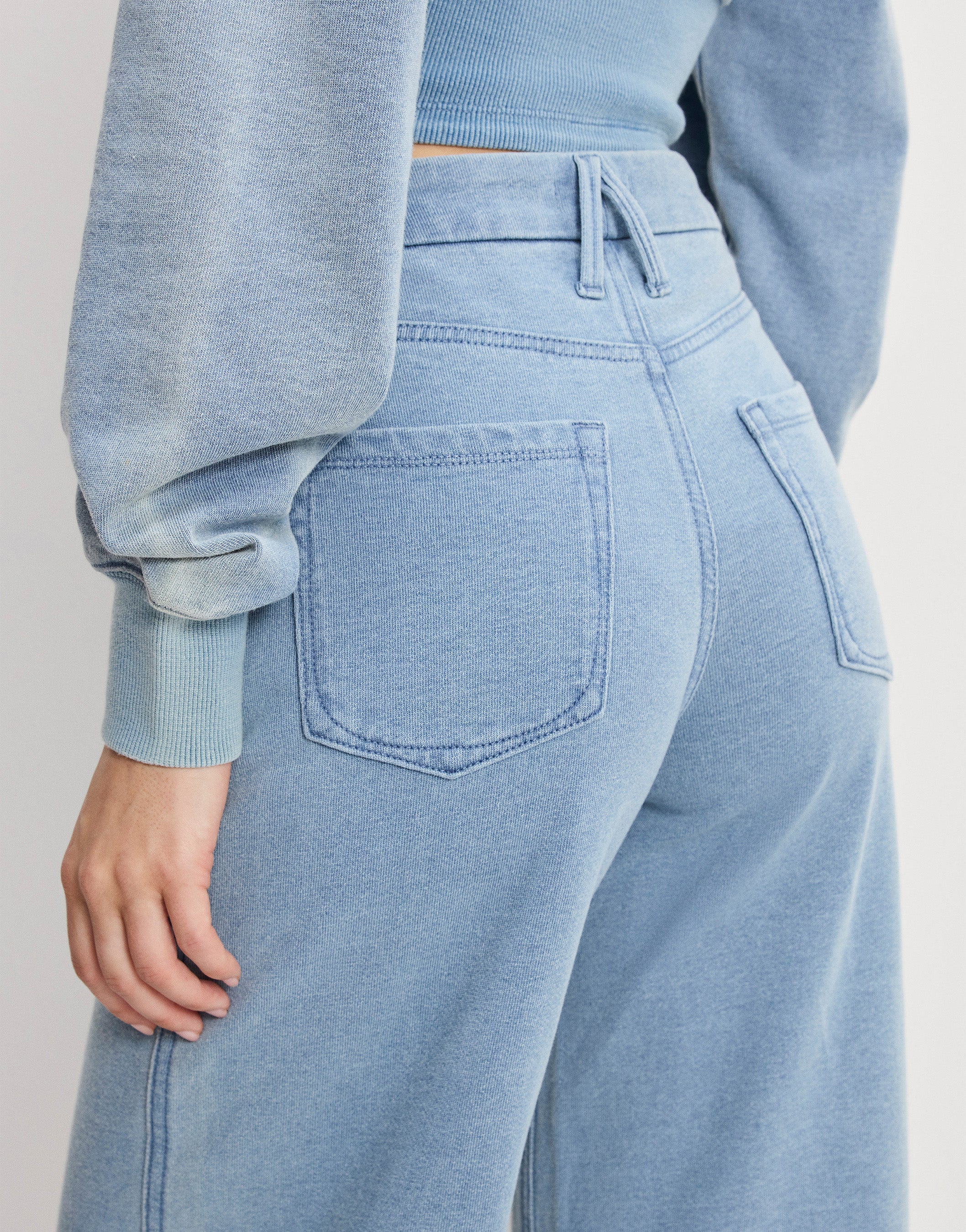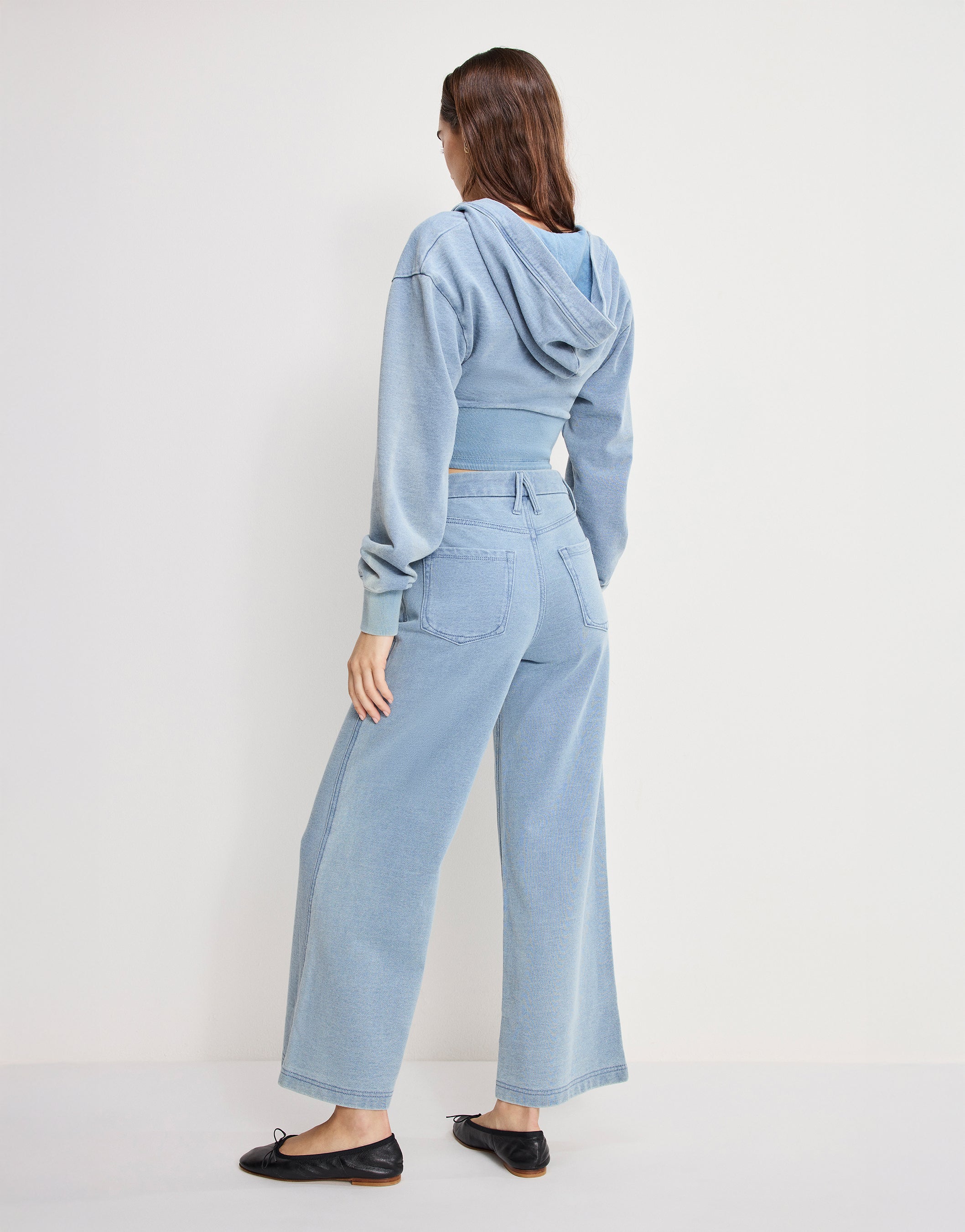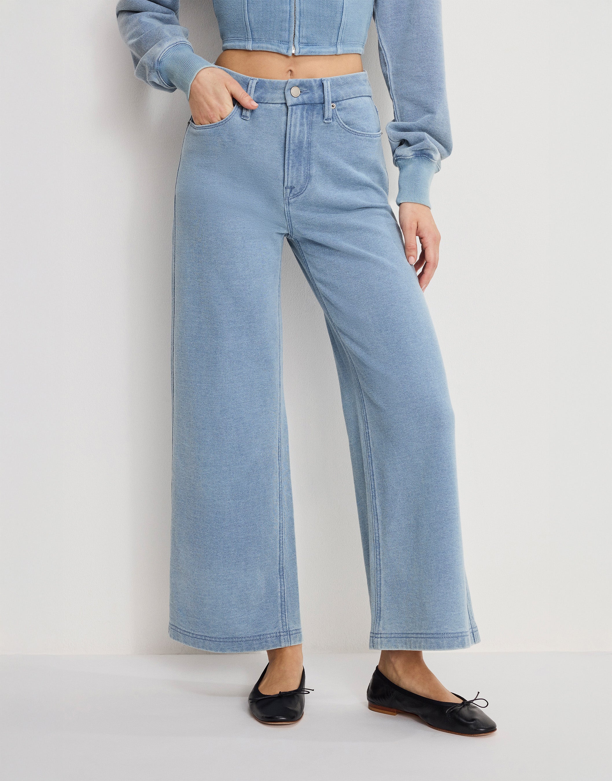 The comfort of loungewear with the look of denim. These high-rise wide-leg pants are made from a soft, flexible knit that gives you all-day comfort without sacrificing style. The relaxed leg and cropped length make them easy to dress up or down — polished enough to wear out, comfortable enough to live in.