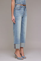 A fresh take on a classic fit. These straight leg jeans feature a clean high-rise silhouette with an oversized cuffed hem for a laid-back, styled finish. Easy to dress up or down, they’re a versatile staple with just the right amount of edge.