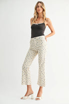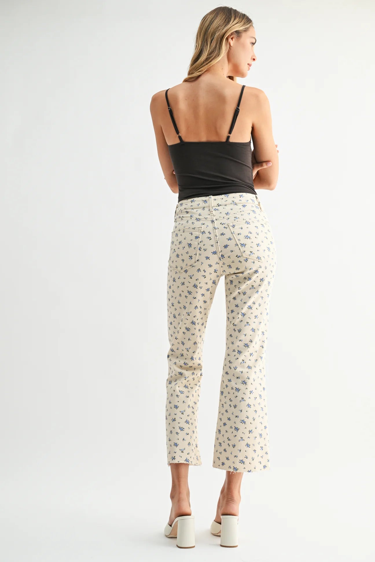 A fresh take on your everyday denim. These jeans feature a flattering high rise, a slim fit through the leg, and a subtle kick flare at the hem. Finished with a delicate floral print for a soft, feminine feel that still keeps things cool. Fit: Rise: 10.5” ; Inseam: 26.5”
