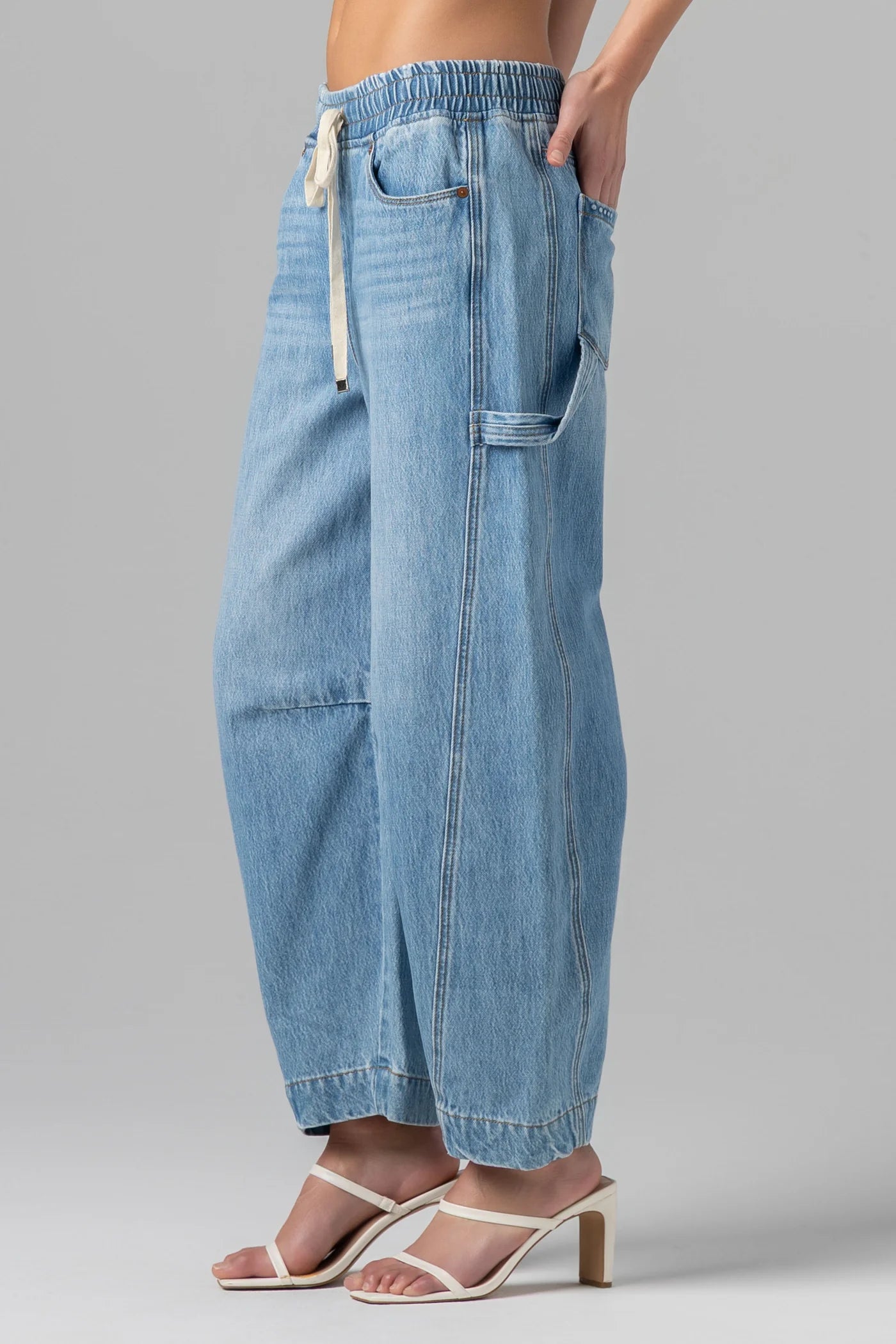 Relaxed, cool, and made for off-duty days. This pair features a comfortable drawstring waist and a softly structured barrel leg for that effortless, laid-back look. The kind of denim you’ll reach for on repeat.