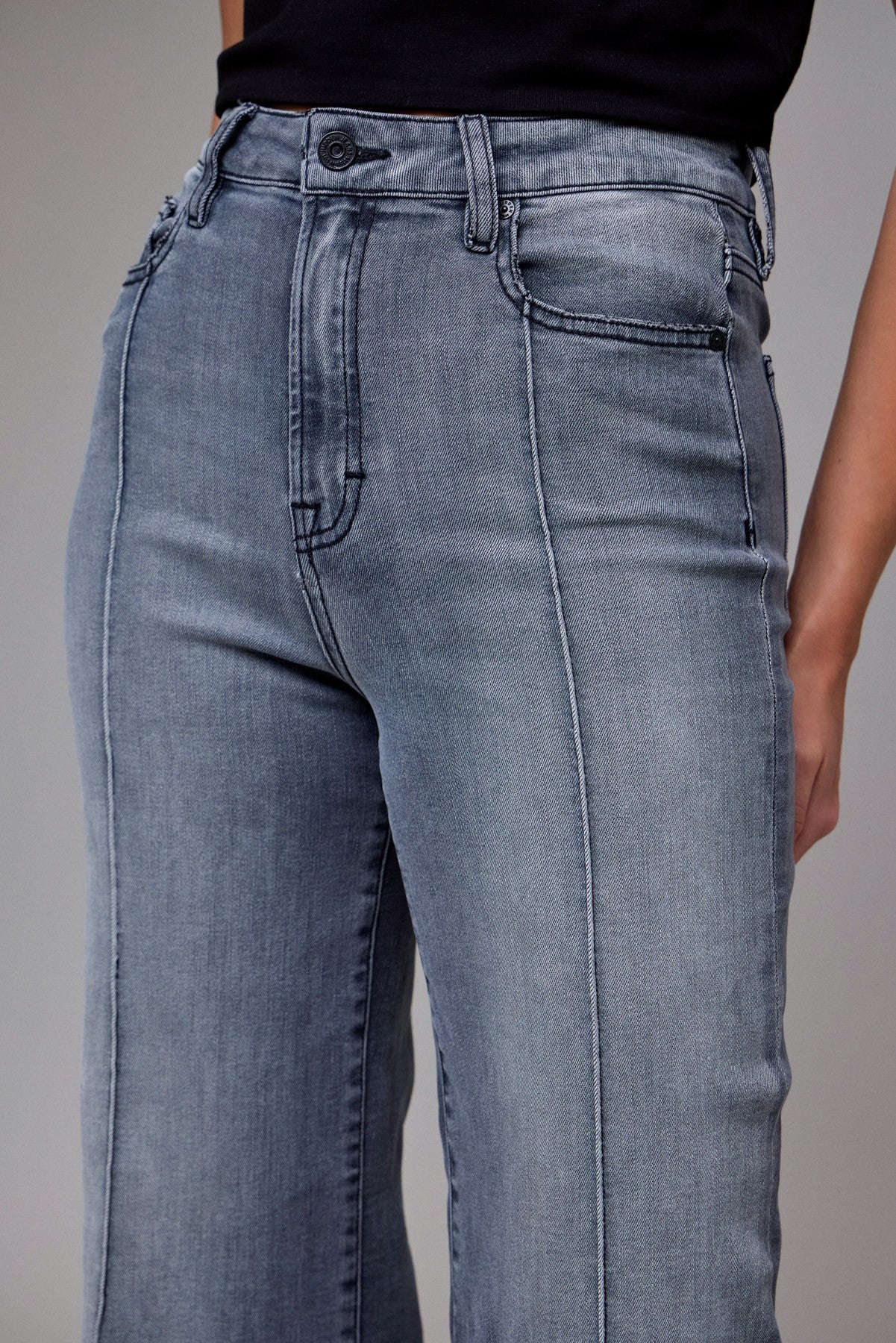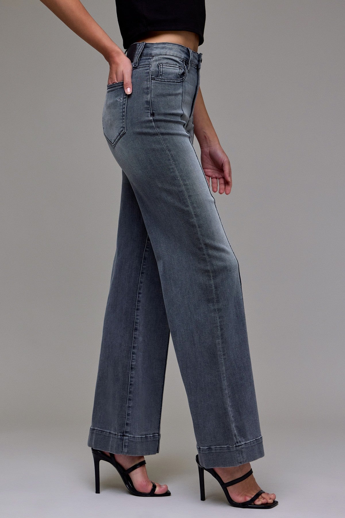 Your new go-to denim. These high-rise wide leg jeans are designed with a clean front seam detail that elongates the leg and creates a sleek, flattering silhouette. Finished in a versatile medium-gray wash with subtle structure, they’re polished enough to dress up but easy enough for everyday wear. A perfect balance of comfort and style.