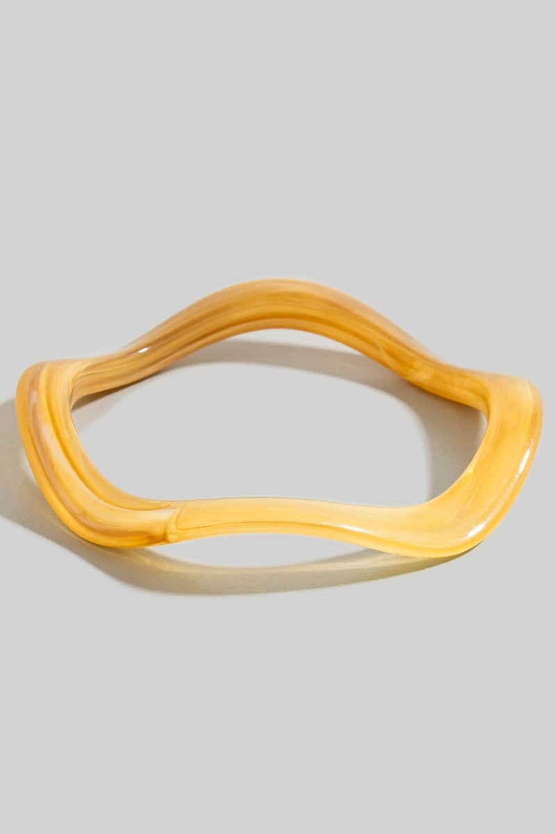 Sculptural and sleek, this wavy resin bangle adds a modern touch to any outfit. Its organic shape makes it a standout piece—perfect for stacking or wearing solo. Lightweight and statement-worthy, it’s your go-to accessory for an effortlessly elevated look.
