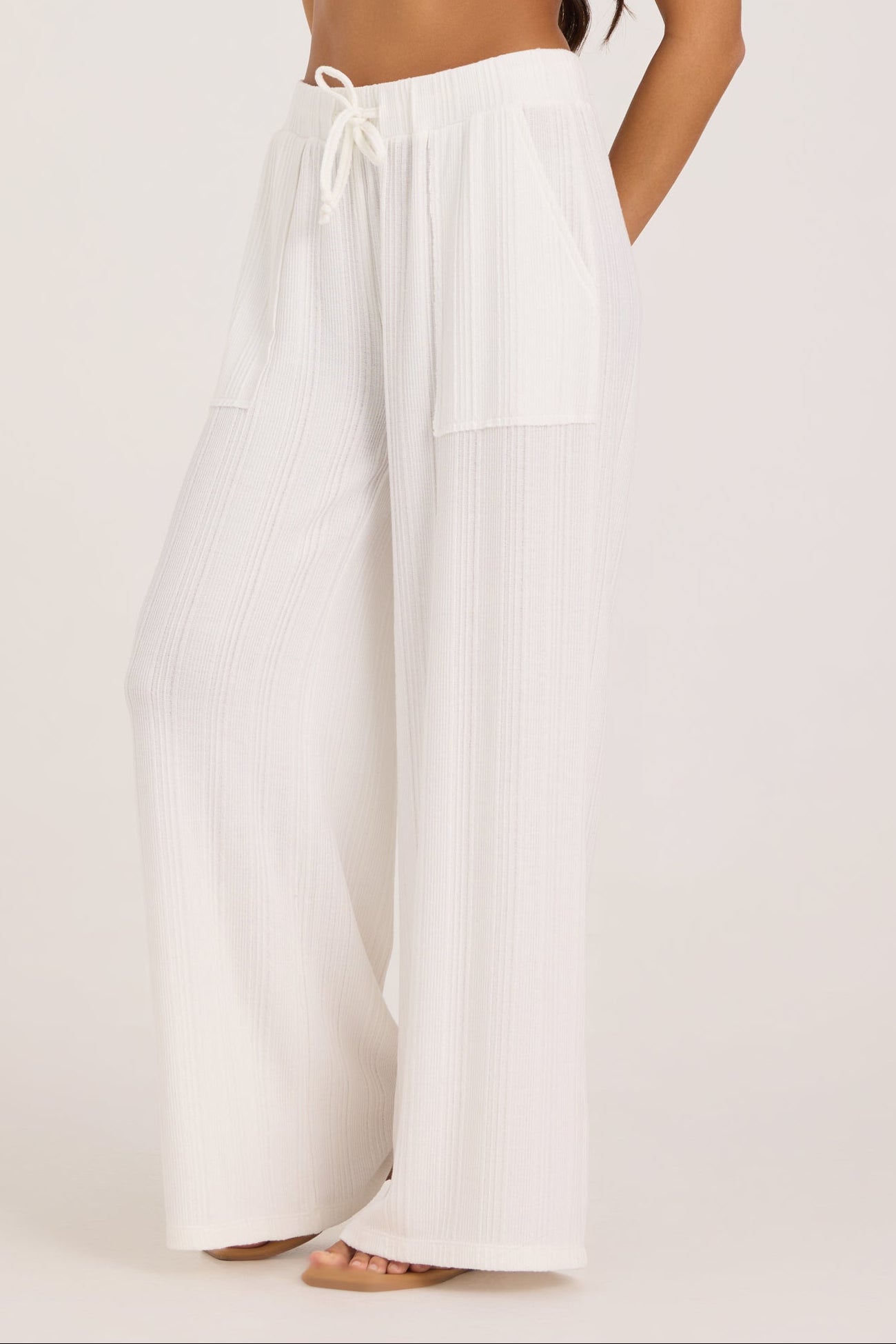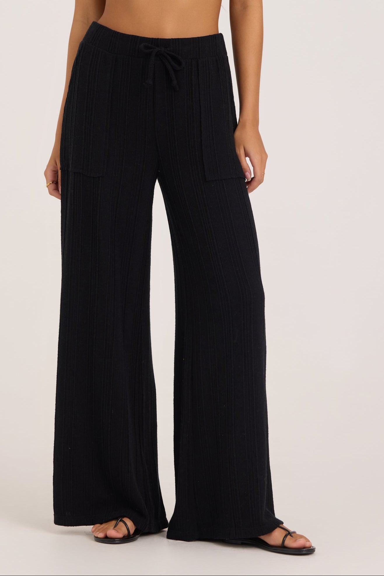 These ribbed wide leg pants offer the perfect balance of comfort and elevated style. Designed with a soft ribbed texture, relaxed wide leg fit, and adjustable drawstring waistband, they’re easy to wear at home or styled out. Pair them with the matching ribbed tank for a polished lounge set or wear them on their own for effortless everyday style.