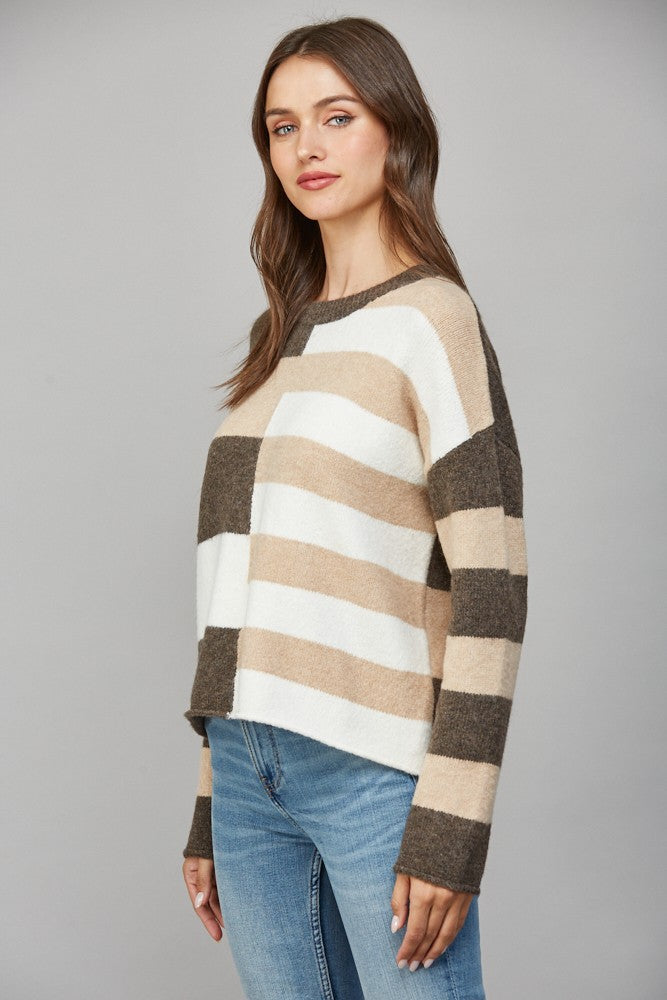 Block Stripe Pattern Crew Neck