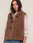The Hosk Vest is made from a soft, faux fur. It has a relaxed fit, making it perfect to layer over your sweaters.