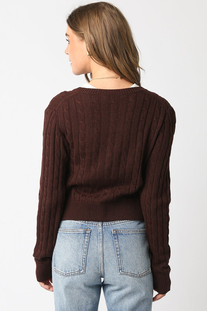 A timeless knit with classic charm, this cable knit cardigan features a flattering cropped silhouette and textured detailing that instantly elevates any outfit. Designed with a button-front closure, ribbed trim, and softly structured sleeves, it’s the perfect layering piece for polished everyday styling. Wear it buttoned up as a top or open over a tee for an effortless, lived-in look.