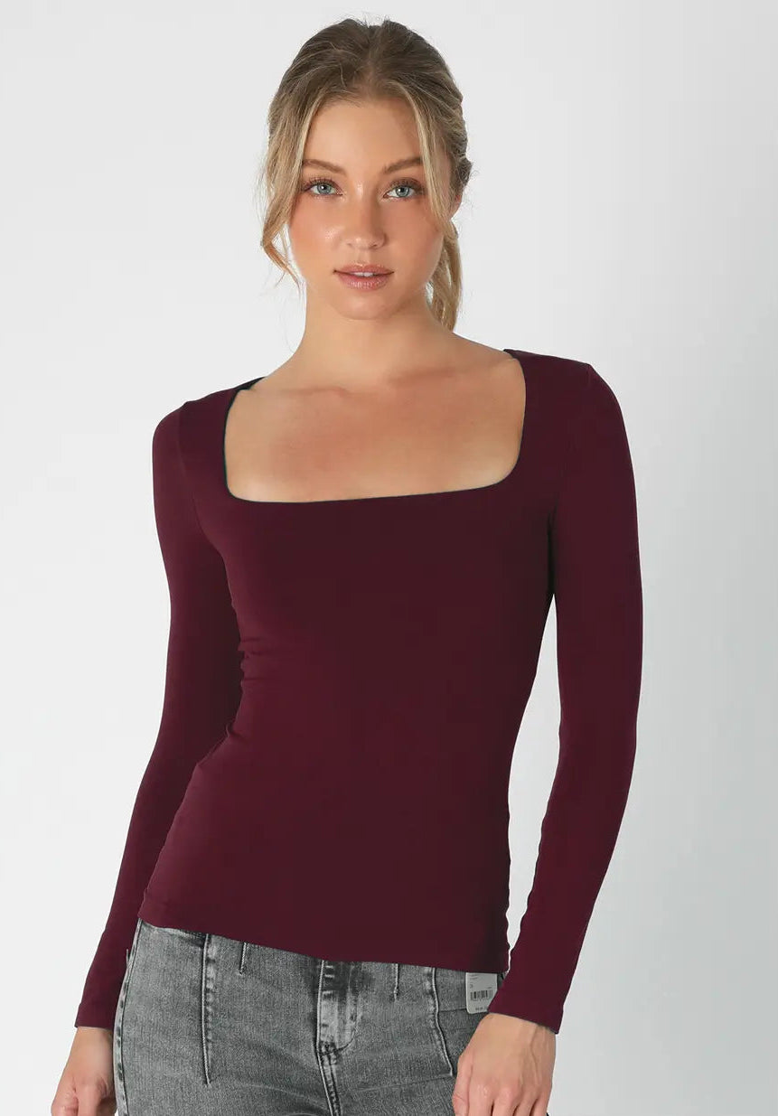Sleek, sculpting, and endlessly wearable. This square-neck long-sleeve top is designed with a smooth, second-skin fit that flatters the neckline and hugs just right through the body. Dress it up with trousers or keep it effortless with denim — it’s the kind of staple that works for everything.