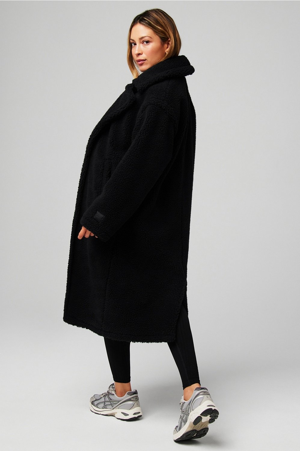 As introduced by Khloé Kardashian & loved by thousands of VIPS, this coat looks like luxury and feels like a cloud. It features a soft, recycled teddy fabric, back slit, and hidden hook closure. Plus, it's fully lined to keep you warm.