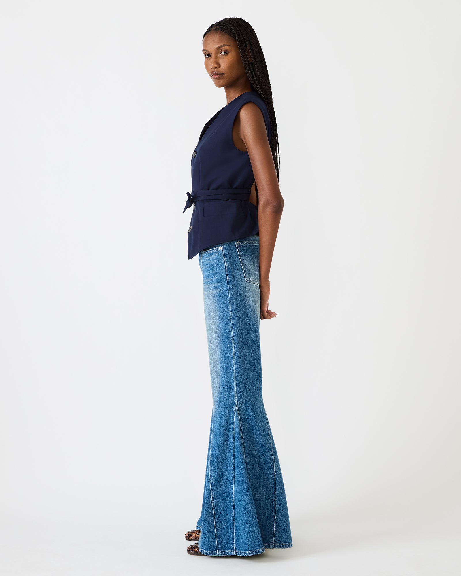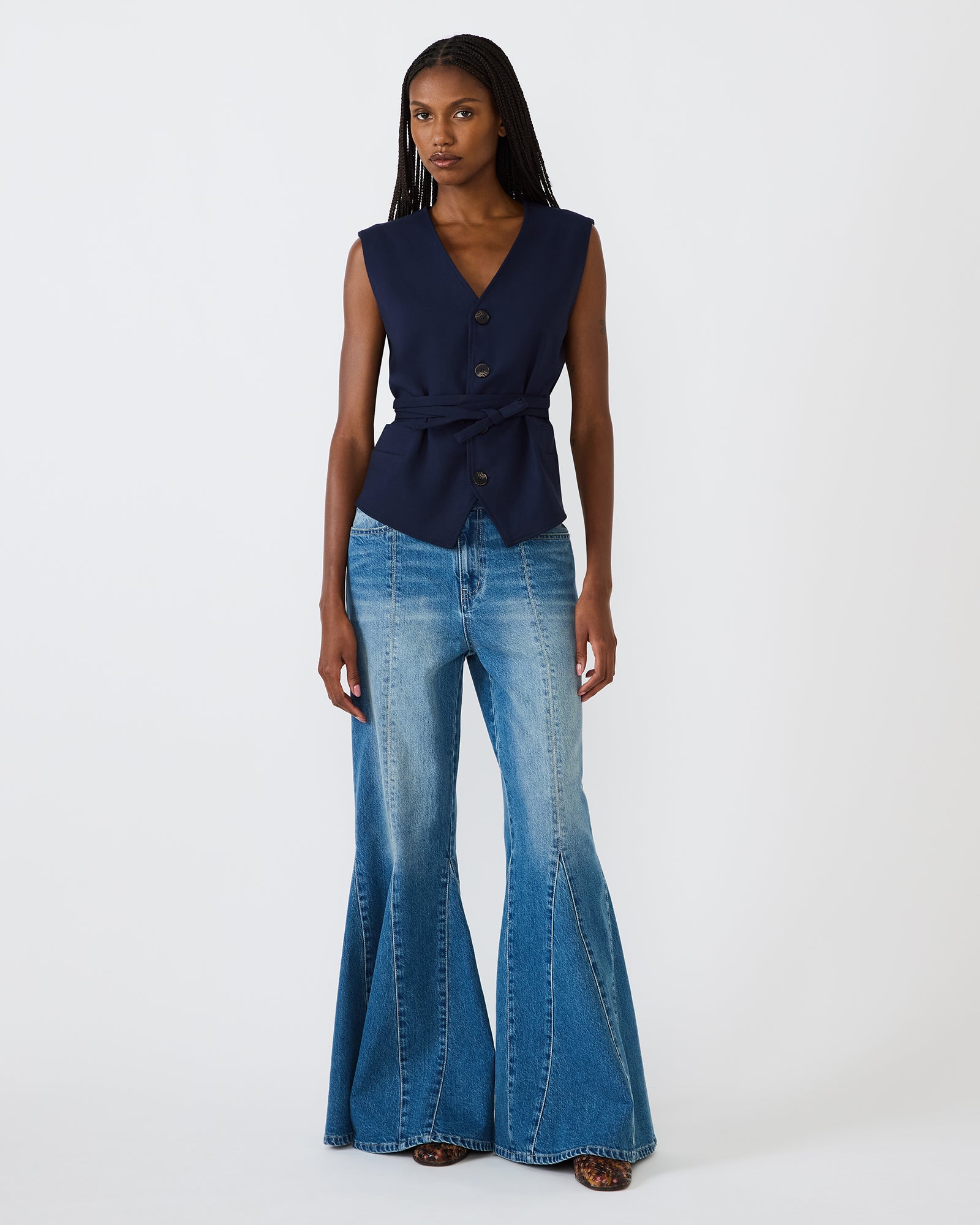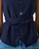 This tailored button-front vest is a must-have for modern, elevated styling. Designed with a flattering v-neckline, structured fit, and self-tie waist belt, it creates a sleek silhouette that’s both polished and on-trend. Wear it on its own as a top or layer it over tees, blouses, or dresses for endless outfit options.