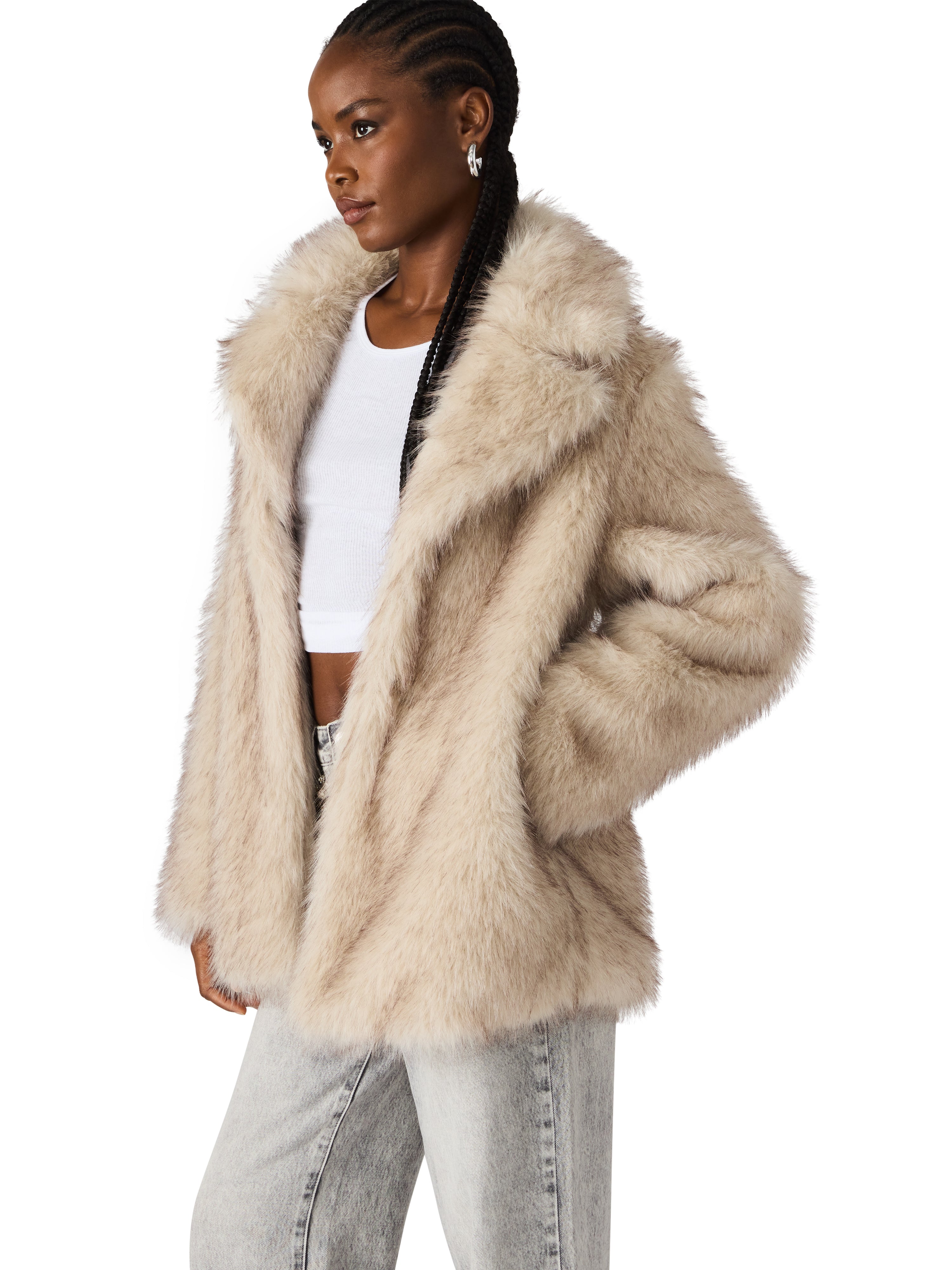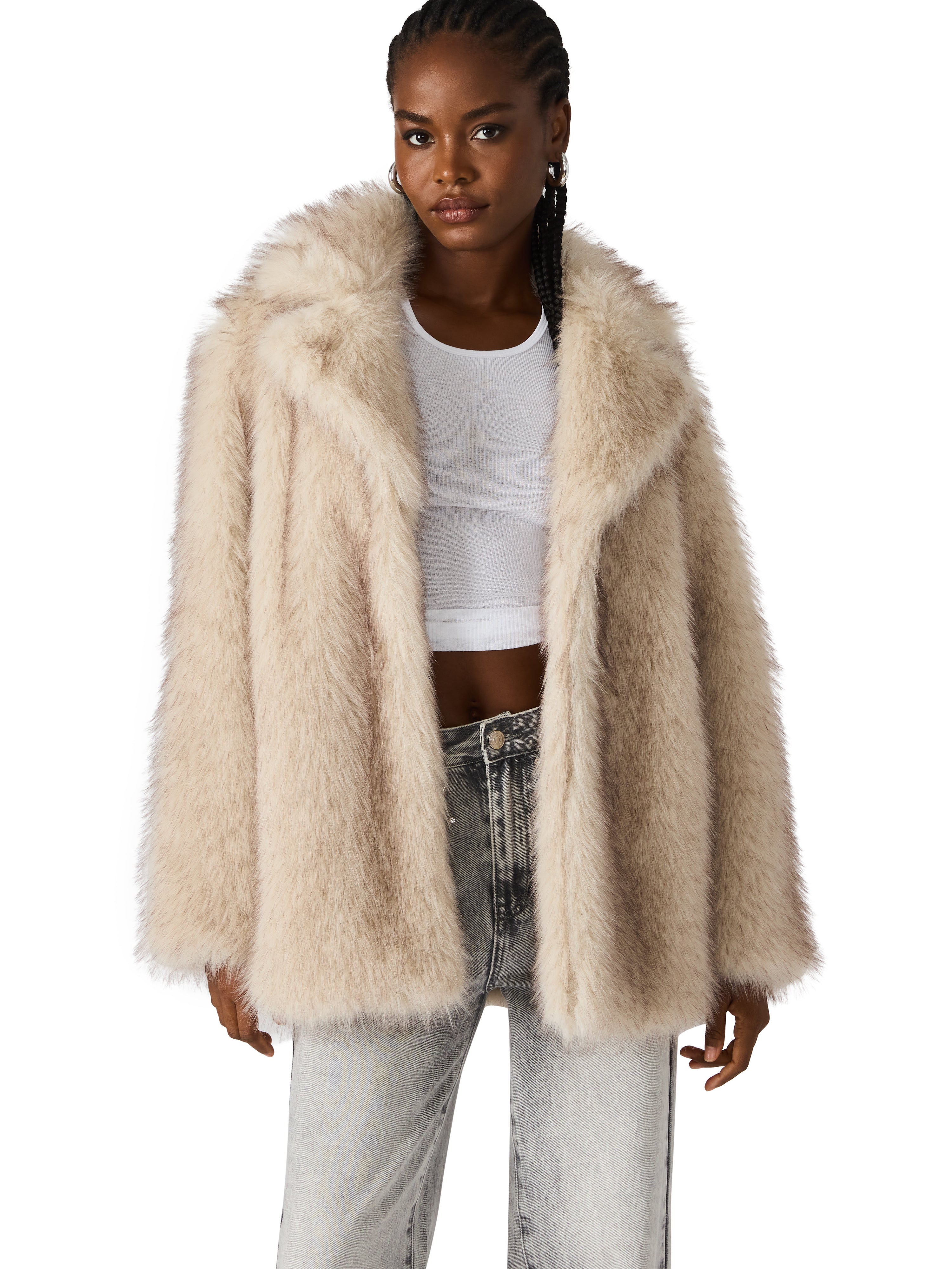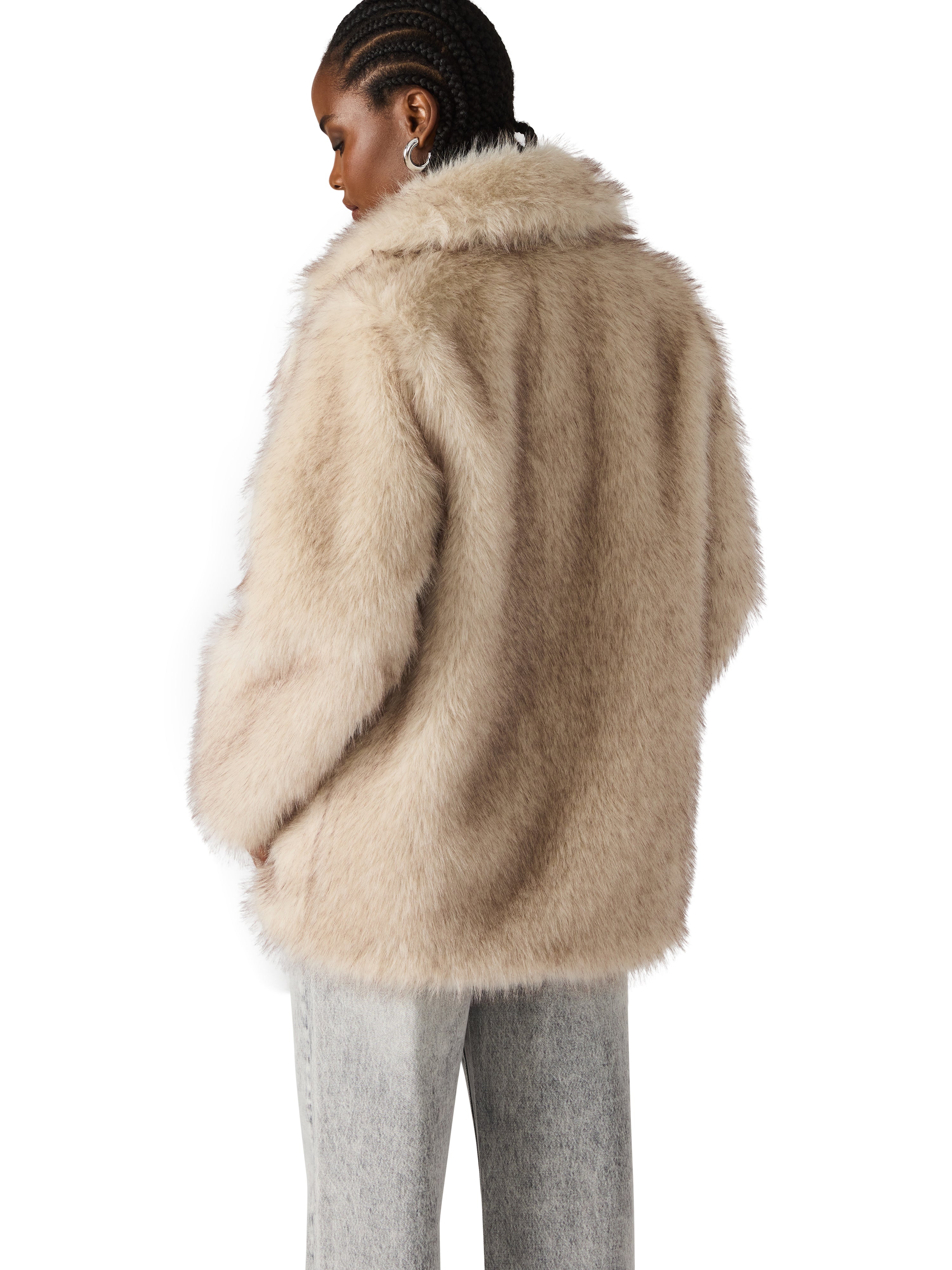 The statement coat of the season. This plush faux fur jacket brings instant glamour and warmth to any outfit. With its oversized silhouette, soft neutral hue, and luxe texture, it’s perfect for dressing up denim or layering over night-out looks. Effortless, elevated, and unbelievably soft — this coat is pure cozy chic.