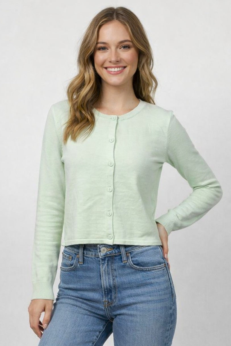 Simple and versatile, this lightweight cardigan features a classic button-front design with a soft, comfortable fit. Perfect for layering, it pairs effortlessly with denim or dresses for an easy everyday look.
