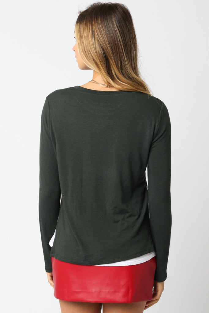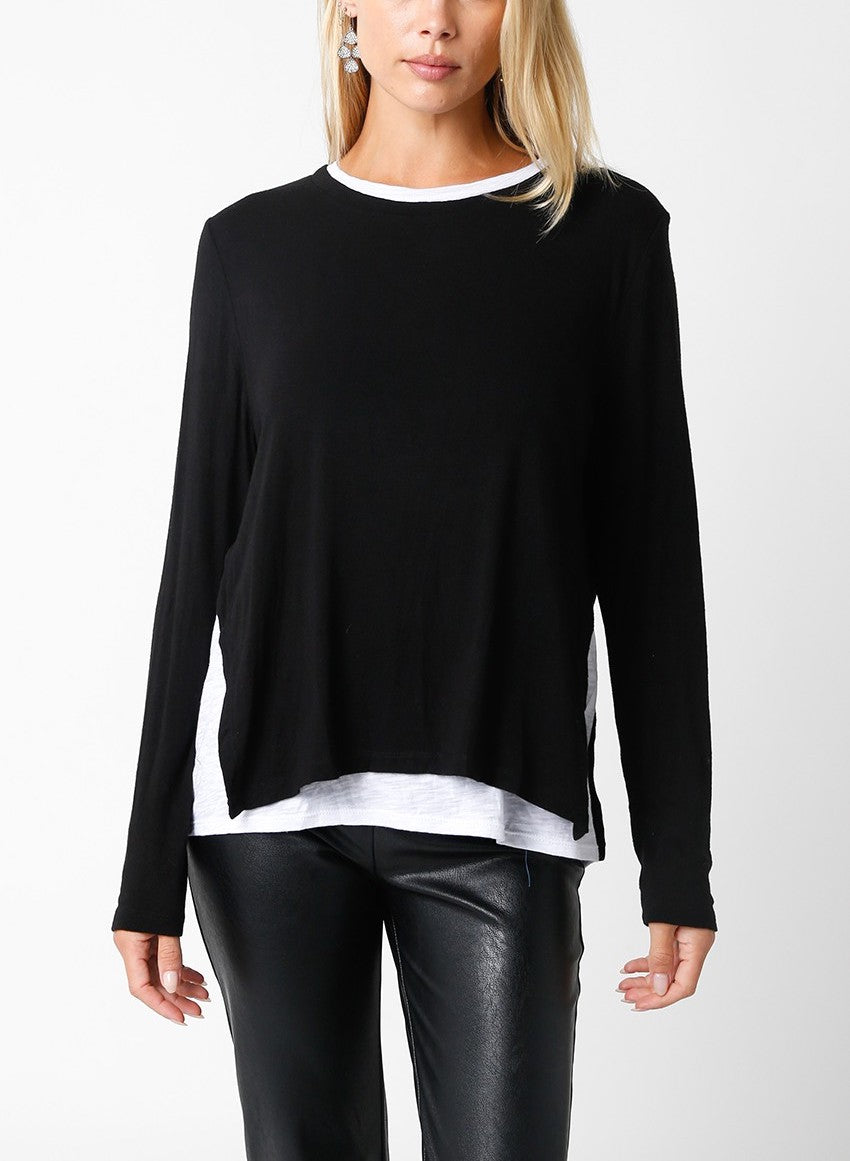 This layered sweater top gives the illusion of a white tee under the sweater without the added bulk, perfect for wearing day or night for a quick easy look.