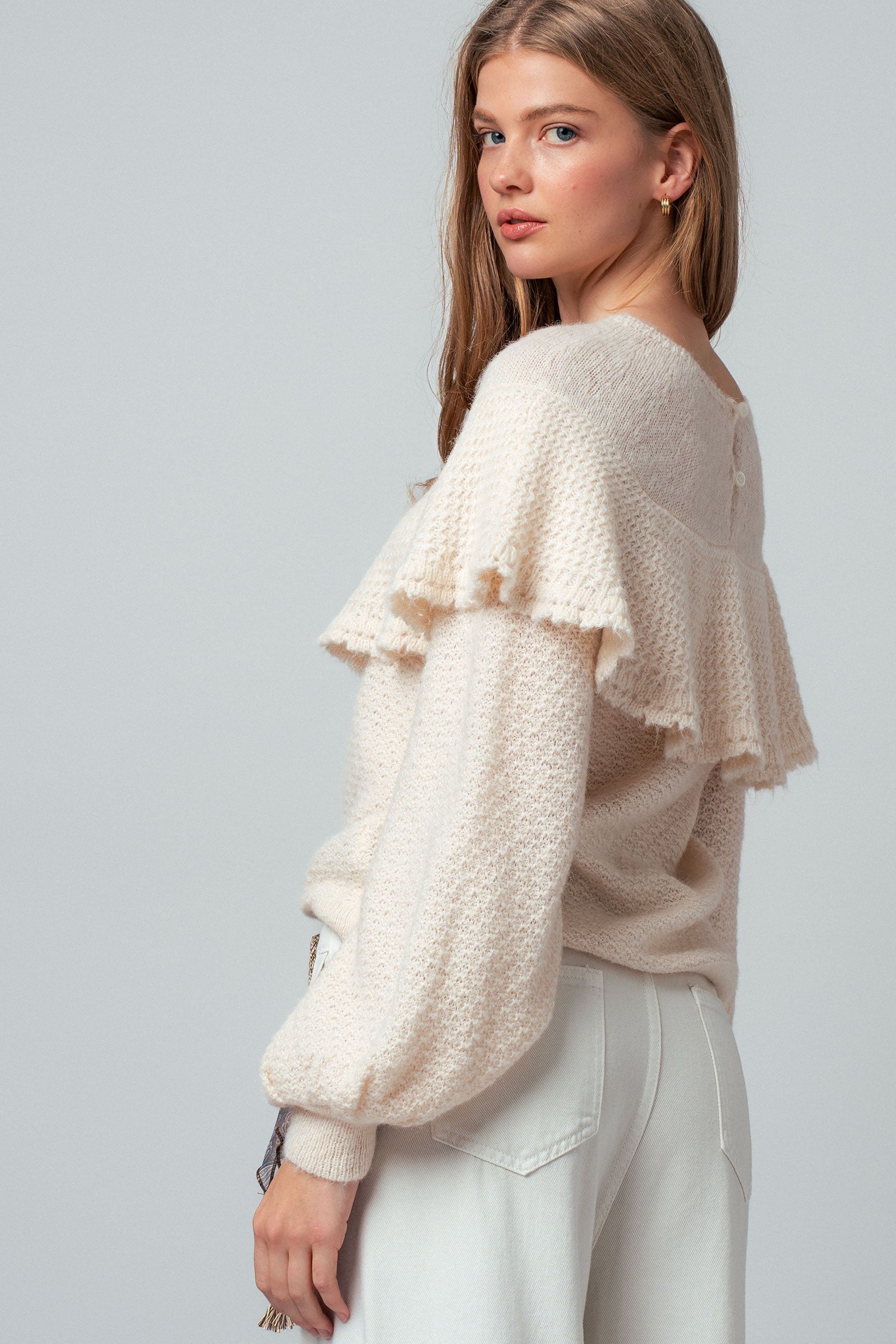 Ruffle Yoke Knit Sweater