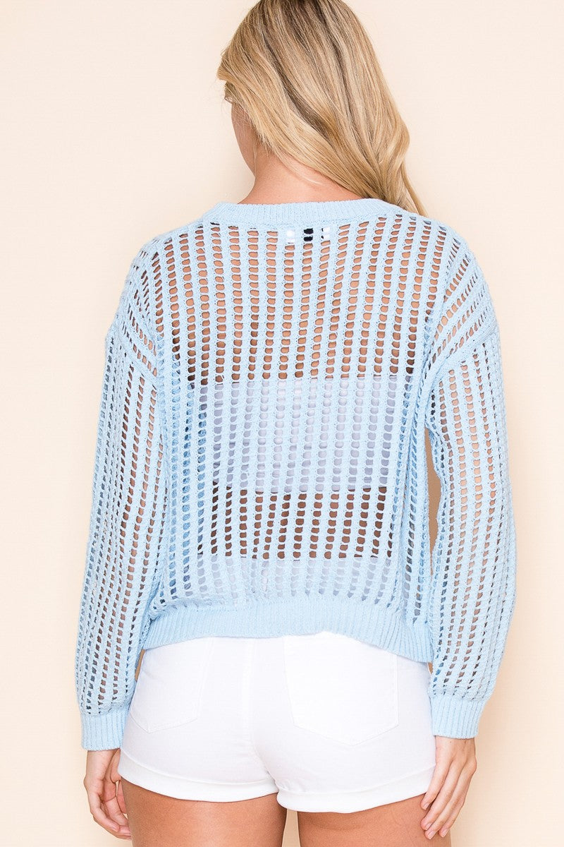 Lightweight and effortlessly cool, this open knit sweater features a relaxed fit with a breathable, airy design. Perfect for layering, it adds a laid-back, beachy feel to any look—throw it over a tank, bralette, or swimsuit for easy styling from day to night.