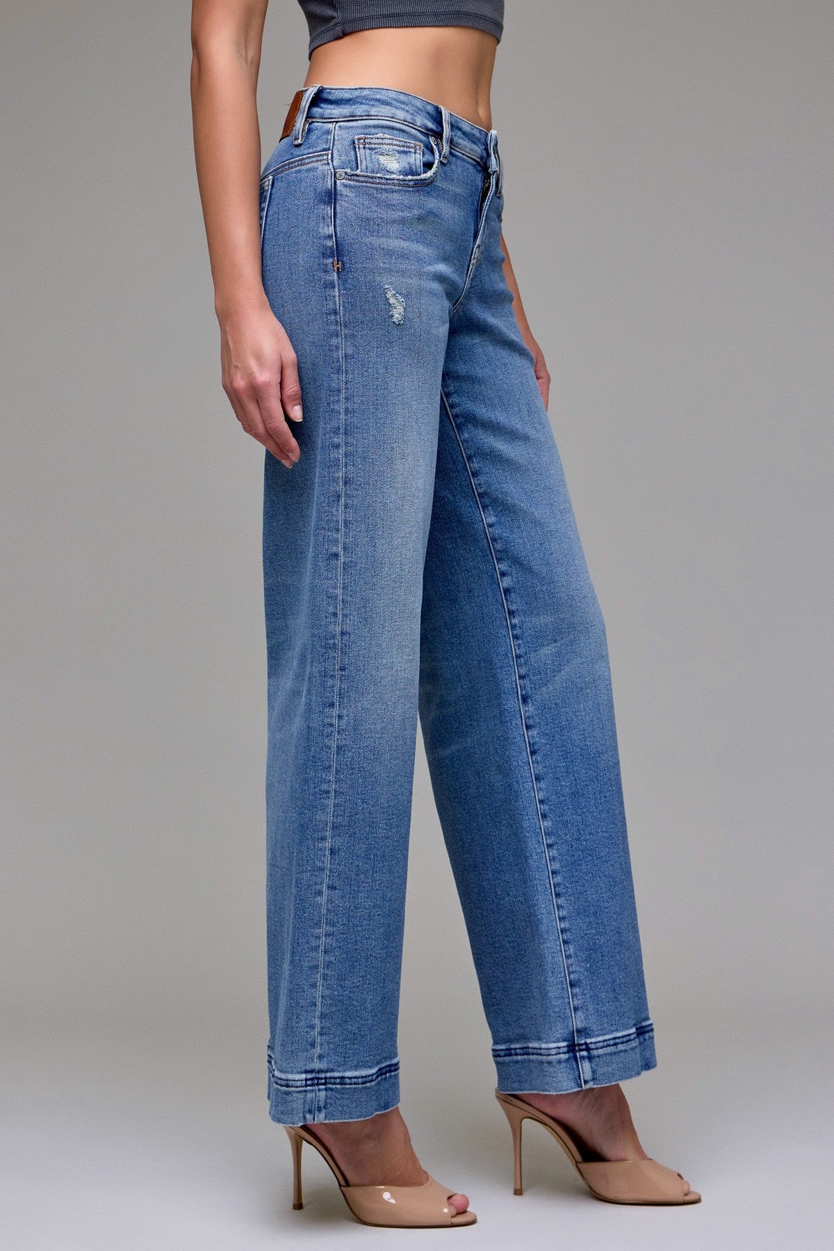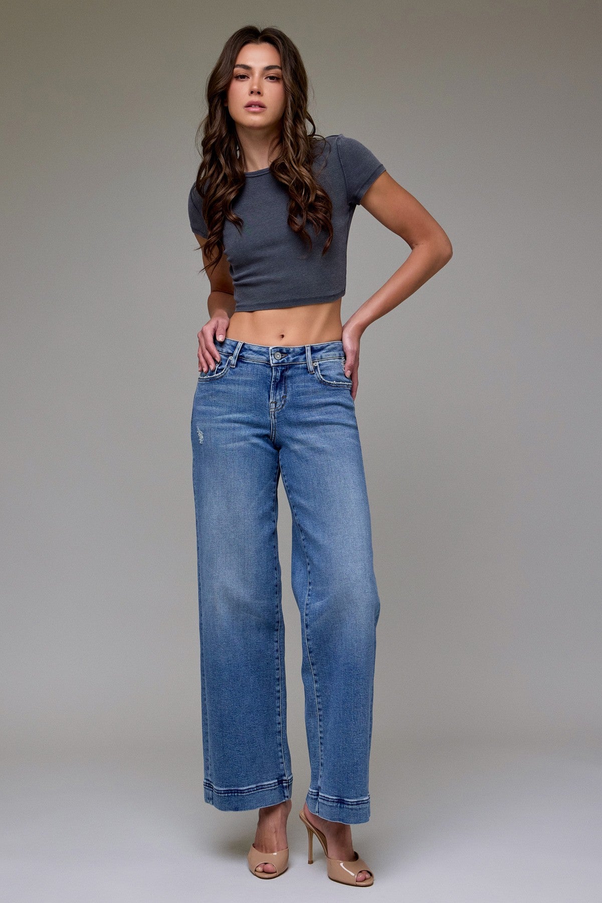 Meet your new denim obsession. These wide-leg jeans feature a relaxed, easy fit with a flattering high rise and soft, vintage-inspired wash. The subtle fading and clean hem detail give them that perfectly lived-in feel — elevated enough to dress up, casual enough to wear every day. Fit:  Front Rise 8 1/2", Inseam 33"
