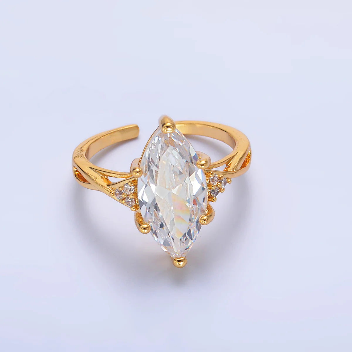 Featuring a bold, elongated center stone with delicate shimmer details along the band, this ring is designed to stand out. The sleek, open silhouette keeps it modern, while the sparkle brings just the right amount of glam.