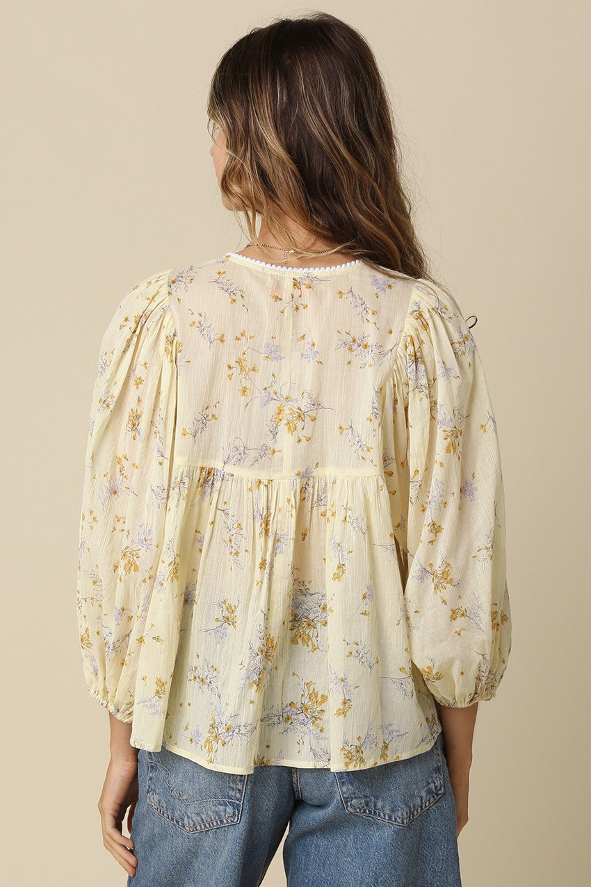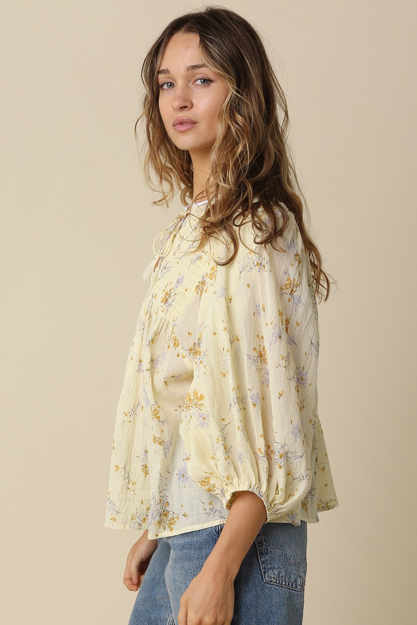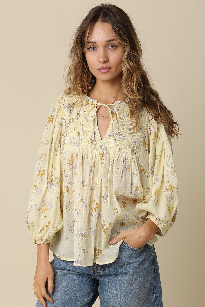 A feminine blouse designed with effortless charm. Featuring delicate floral print, soft gathered detailing, and a relaxed silhouette, this lightweight top offers an easy, breezy feel that’s perfect for everyday wear.