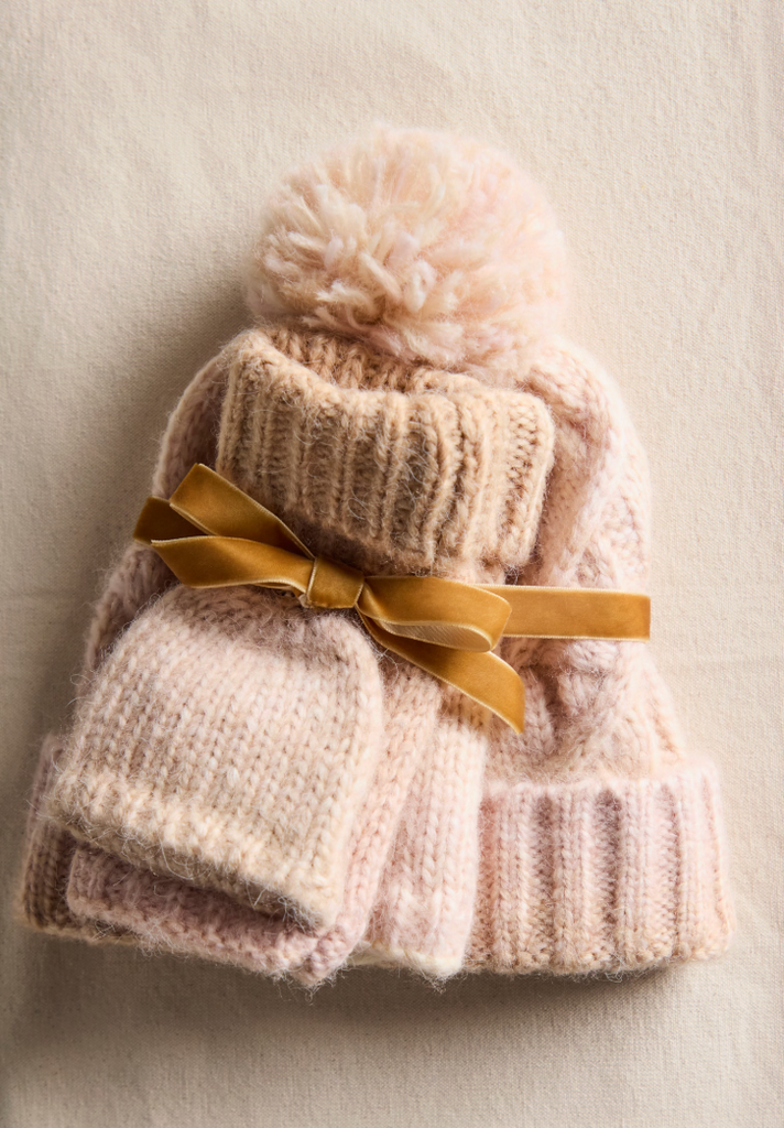 Great for gifting or gracing your own cold-weather accessories collection, this forever essential set of a beanie and gloves is featured in a chunky knit fabrication for the perfect touch of cute and classic.