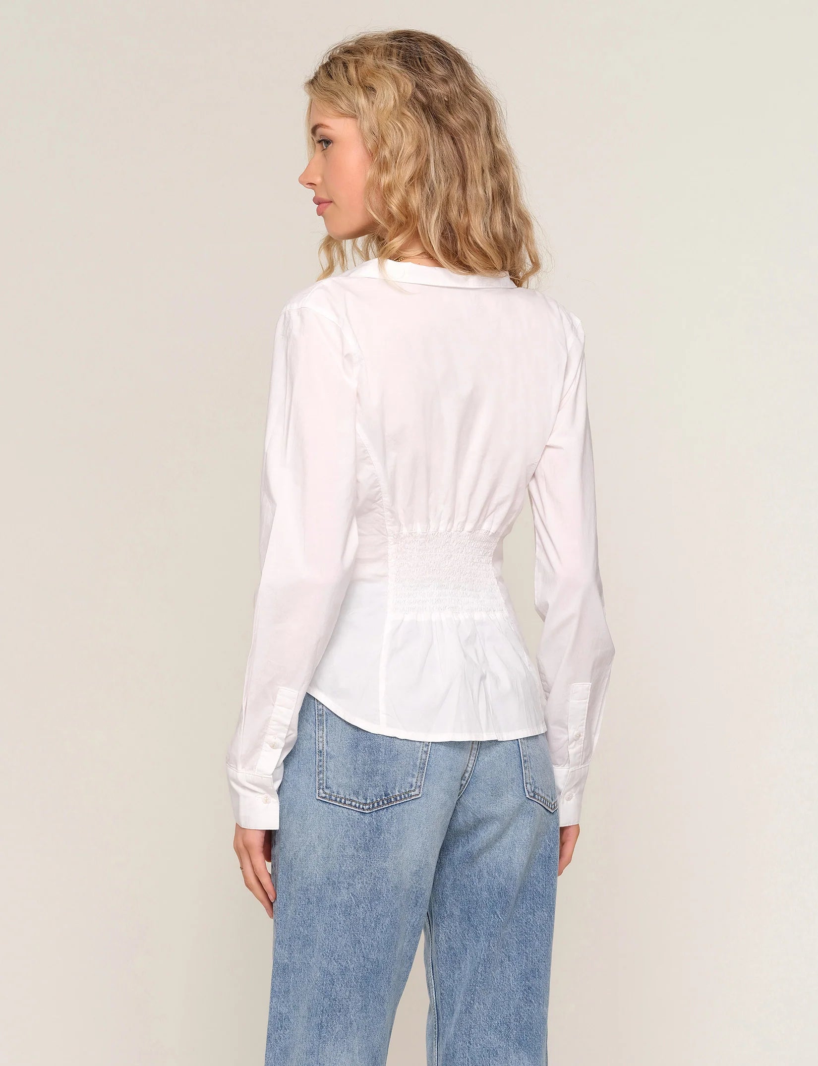 The Samira Top is a classic shirt with a twist. It features a super flattering wrap front and smocking at the back panel, for the ultimate fit.