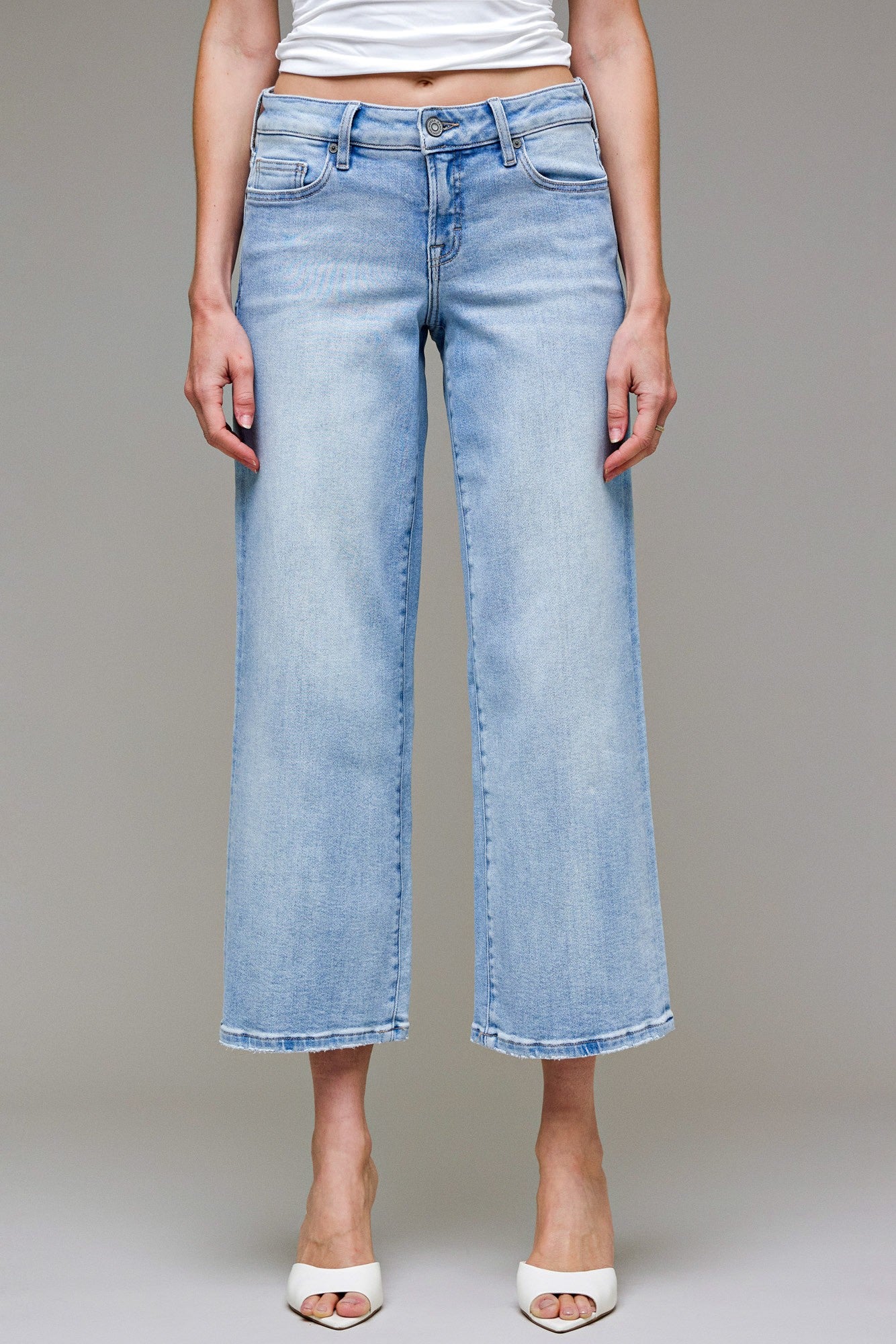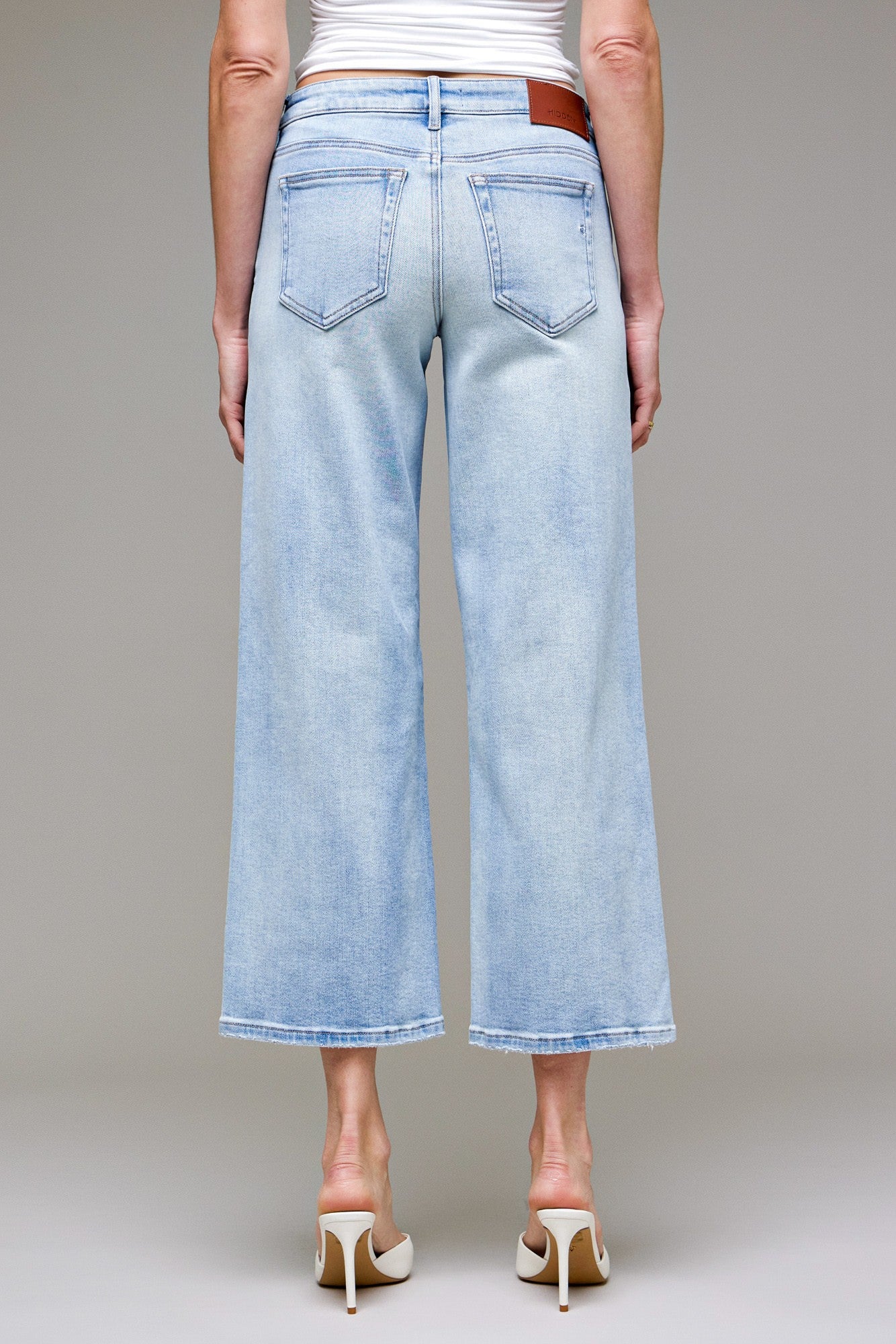 A modern wide-leg denim designed with a flattering high-rise fit and effortless cropped length. The relaxed silhouette creates an easy, everyday look while maintaining a polished feel that transitions seamlessly from casual styling to elevated outfits. Fit: Front Rise - 8 1/2" Inseam - 27"