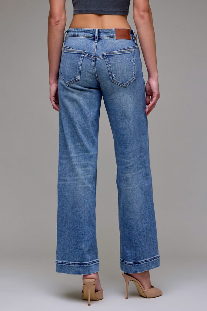 Modern, easy, and endlessly flattering. These high-rise wide-leg jeans feature a relaxed silhouette that drapes beautifully while keeping its structure. Crafted in a soft, medium-wash denim with light fading and subtle whiskering, they’re the perfect blend of vintage and current.