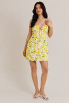 This lemon print mini dress is the ultimate summer statement. Featuring a sweetheart neckline with a tie-front detail, adjustable spaghetti straps, and a flattering fit-and-flare silhouette, it’s the perfect look for warm days, vacations, and brunch dates. Fresh, flirty, and bursting with citrus charm!