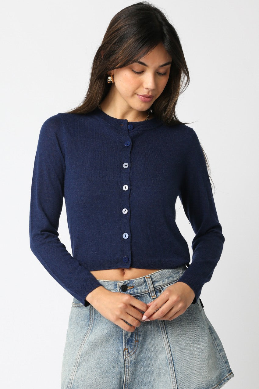 This cardigan is the perfect lightweight layer for any season. Featuring a classic button-up front, a soft knit texture, and a cropped fit, it pairs effortlessly any outfit.