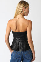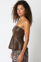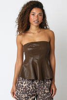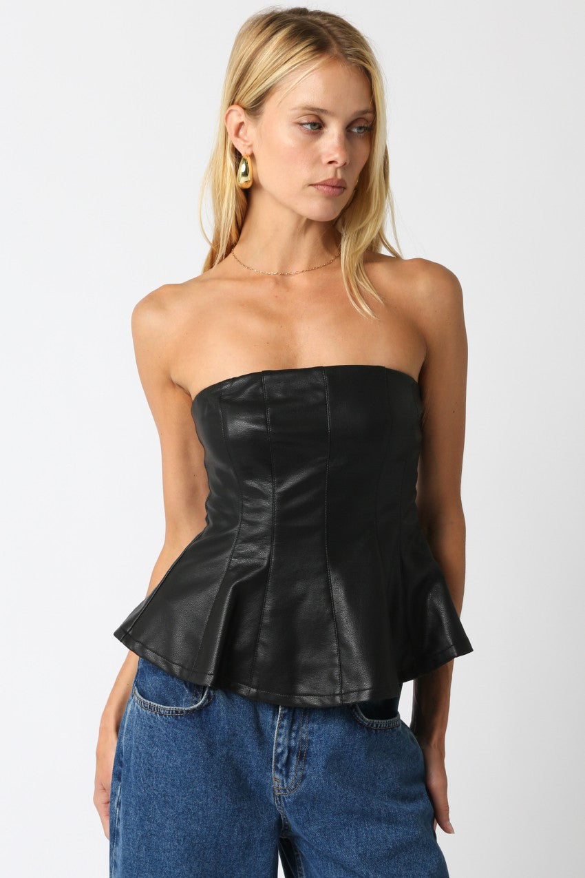 Vegan Leather Peplum Tube Top