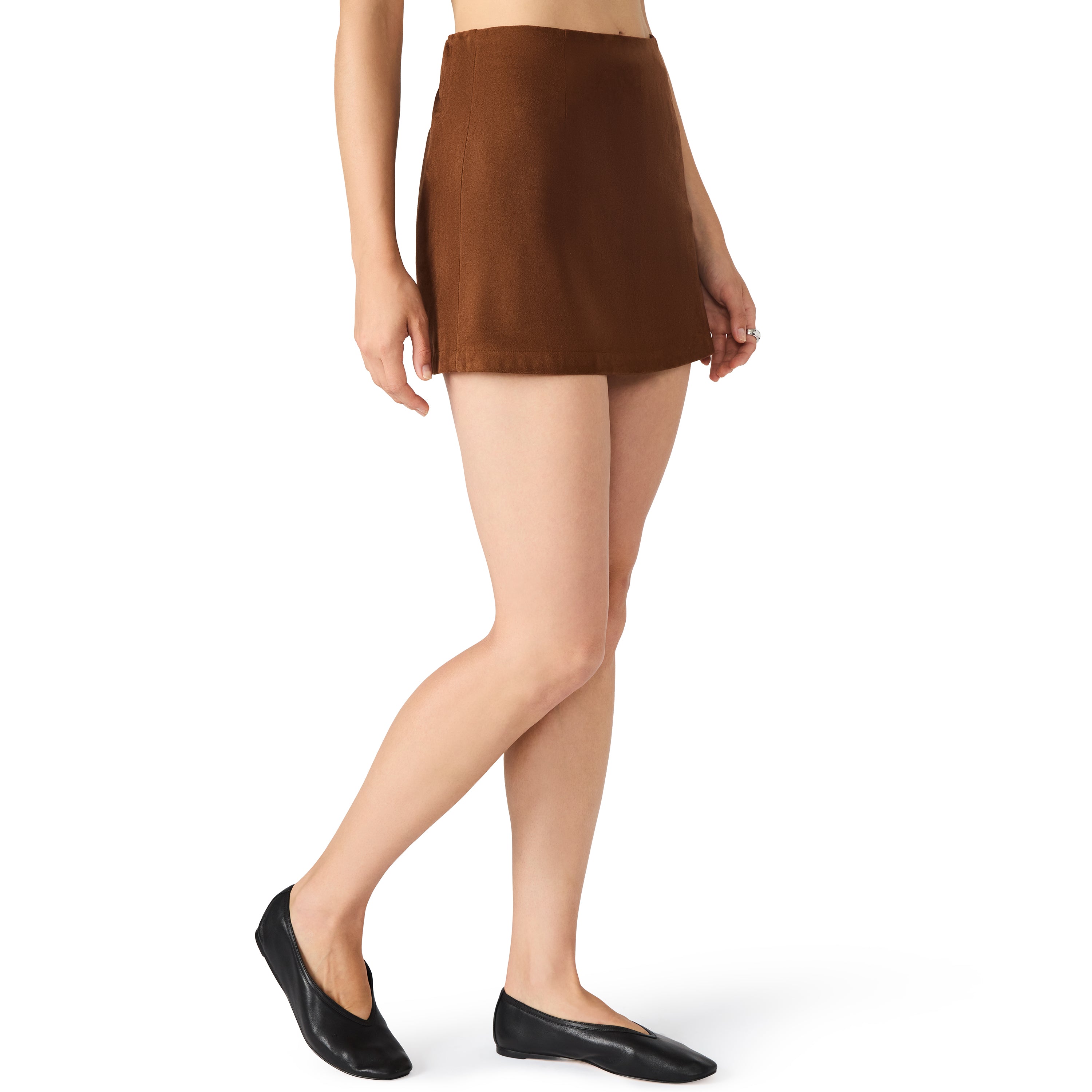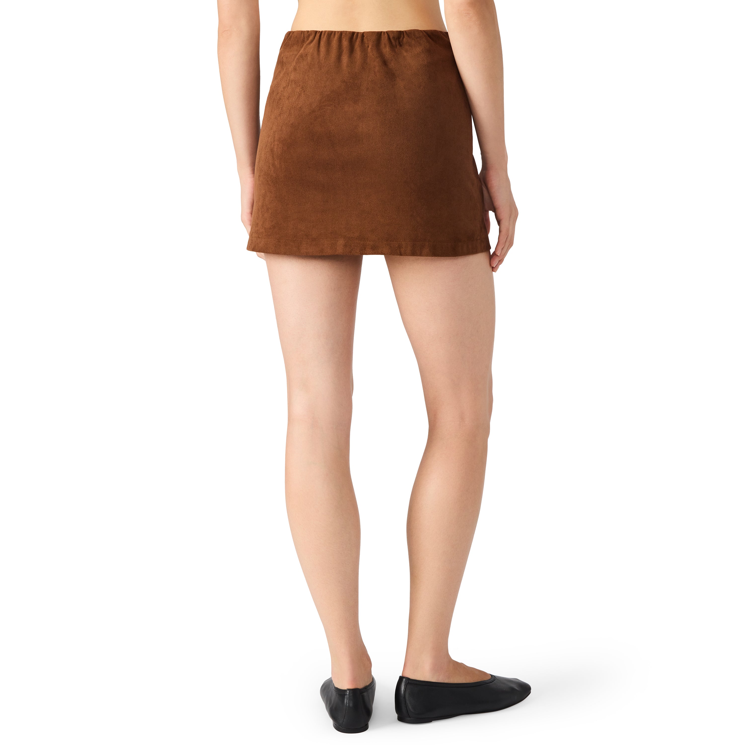 Sleek, soft, and effortlessly chic, this pecan brown mini skirt is a fall wardrobe must-have. Crafted from luxe faux suede with a smooth, velvety finish, it features a streamlined silhouette and a high-rise fit that flatters the waist.