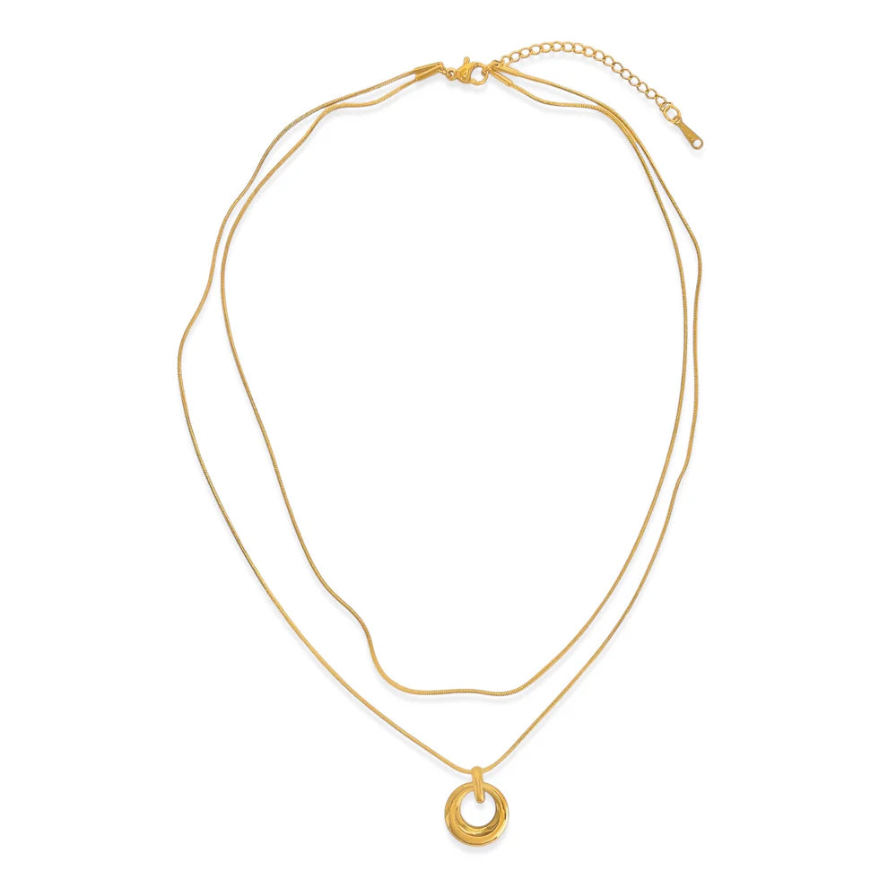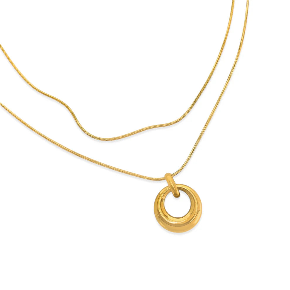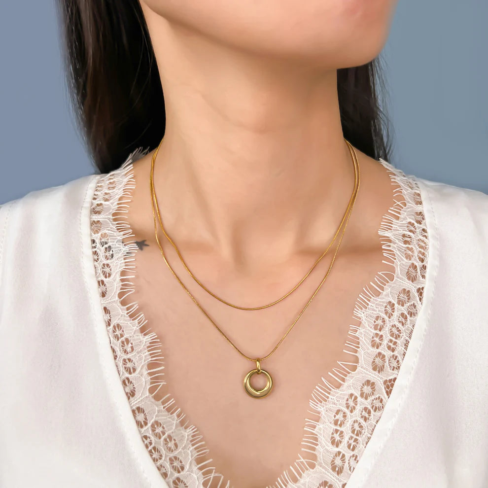 Effortlessly chic and endlessly wearable — this layered gold necklace adds the perfect finishing touch to any look. Designed with two sleek snake chains and a minimalist circle pendant, it brings subtle shine and modern edge to everything from a casual tee to a night-out dress.